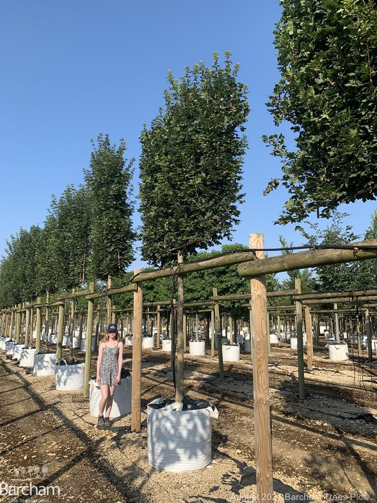 The crowns have been grown within a flat frame 1.2m wide by 1m high and the trees have a clear trunk of 1.8 metres.