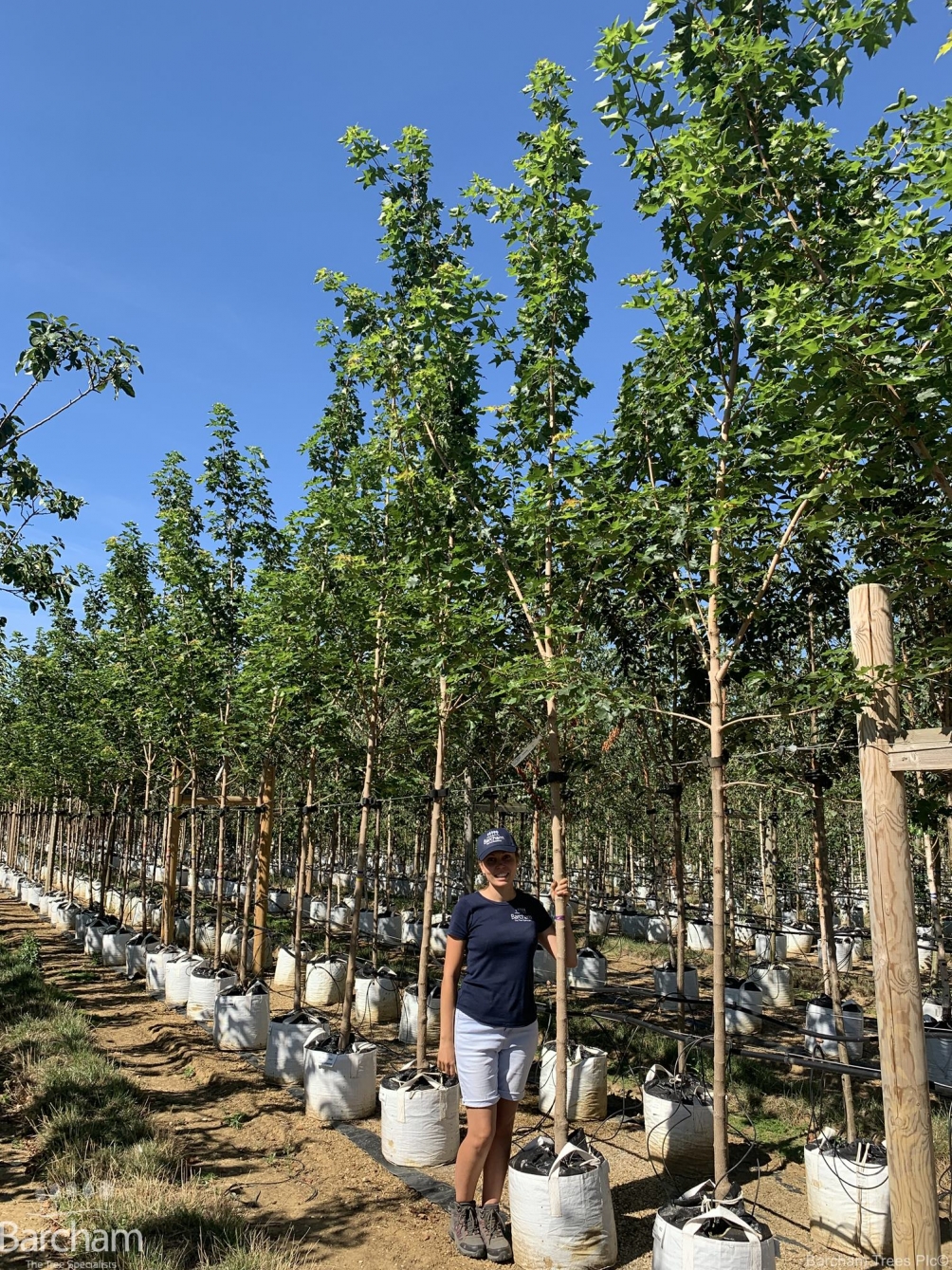 Not as long lasting for autumn colour as Liquidambar, the October / November display is nevertheless very striking and its urban toughness makes this clone a great addition to our range of Norway maple types