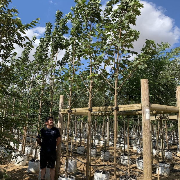 A vigorous, large and conical cultivar, it was selected in the late 1940s in the Netherlands, where it is widely used as a street tree. Negenia has dark green, red stalked leaves.