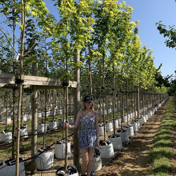 The leaves are primrose yellow as they open, darkening to gold before turning green in summer.