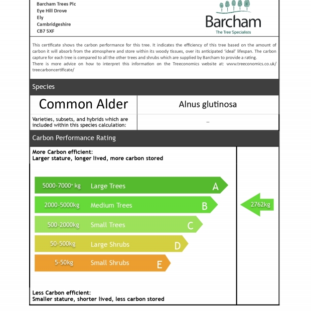 In its early years Common Alder can grow very quickly, sometimes putting on over two metres of growth in a single growing season when the availability of water coupled with high temperatures predominate. A great tree for use as a screen, it is often seen flanking orchards for this reason.