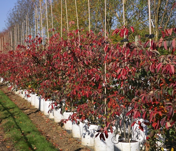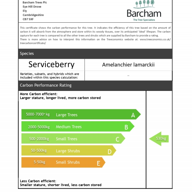Starting in spring, the profuse white flowers emerge in plentiful racemes (clusters along the stems), covering the tree from top to bottom. The foliage follows the blossom, emerging a coppery colour which turns to bright green by late spring. The fantastic rich red autumn colour of Amelanchier lamarckii concludes this trees remarkable display in conjunction with rounded fruits which are initially red in summer before turning black in the autumn. Although not the sweetest of tasting fruits, they are edible, adding to the attraction of this little tree as a superb addition to any garden planting scheme.