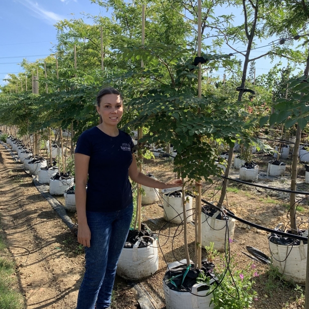 It makes a small rounded tree and is remarkable for its very large doubly pinnate leaves produced mainly in a “ruff” towards the tips of its stems.