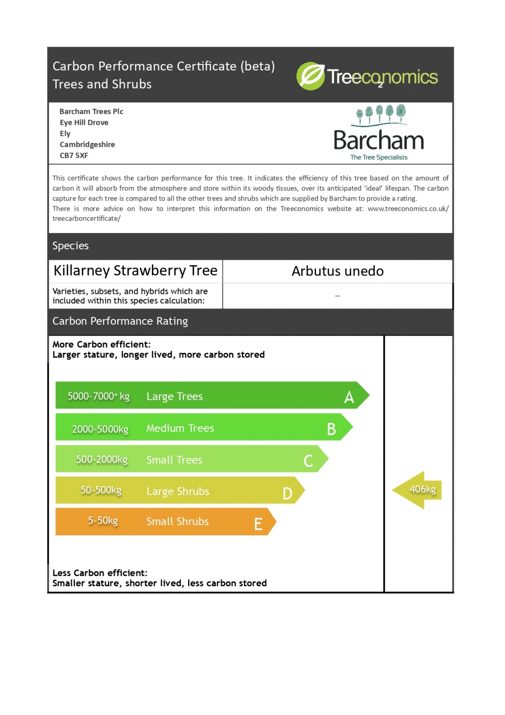 This attractive evergreen tree has young shoots that are tinged red and harden to dark green. The small white, bell shaped flowers appear in small clusters and are produced together with the red fruit in the autumn, providing a contrasting display. As this tree matures, the brown bark sheds, giving it a peeling, ragged appearance.