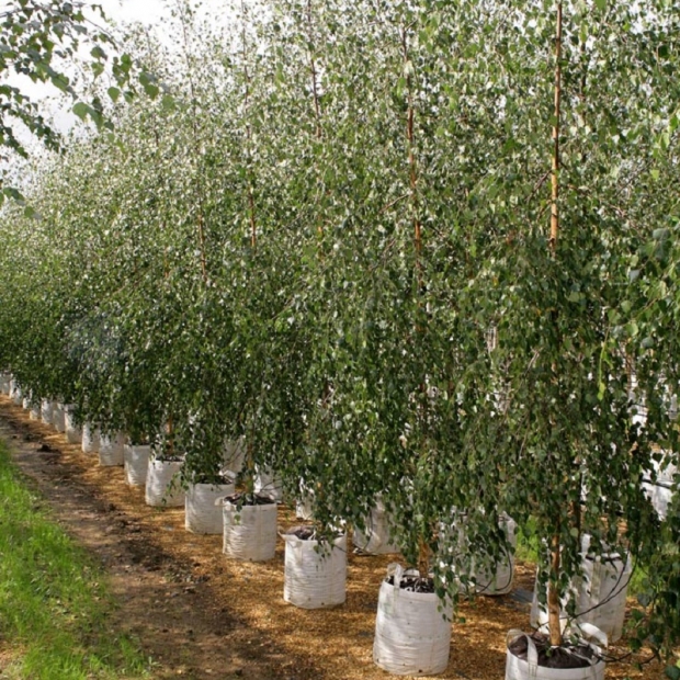 Originating in the early 1870s, this small to medium weeping birchhas no defined central leader and therefore eventually forms an attractive dome shape. Sometimes produced top worked to get the initial height, we prefer to grow a structurally stronger plant from the base and draw up a leader until we have formed a 1.8-2 metre clear stem that can support the crown thereafter.