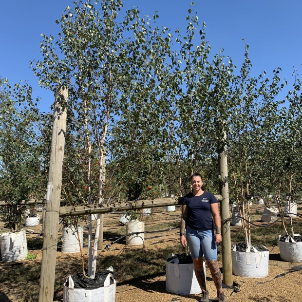 Like Betula pendula, we produce this tree as both a standard specimen tree and a multi-stem. At Barcham, our multi-stem forms are true coppices, rather than 3 or 4 plants in a pot, this is something to be wary of; multiple trees grown to form a multi-stem are unlikely to thrive in the long term.