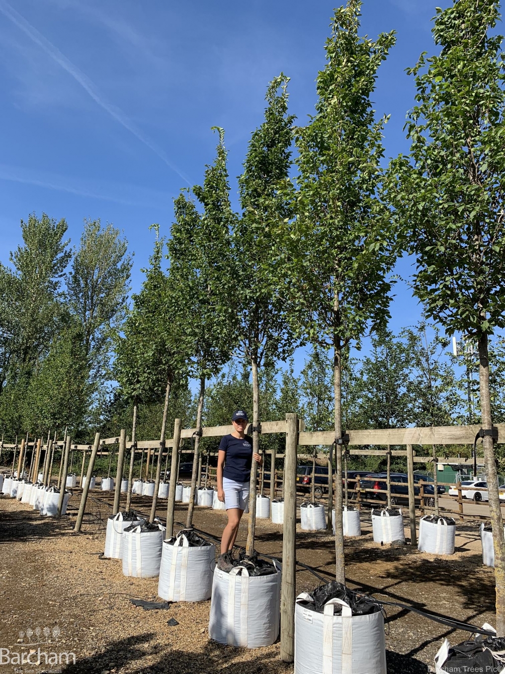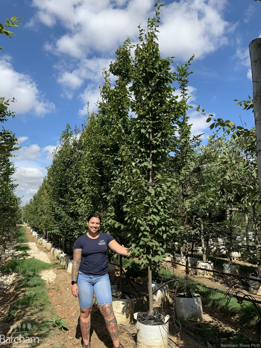 A far better proposition for planting in restricted areas than Carpinus betulus Fastigata it retains its columnar habit being only 3m wide after 25 years.