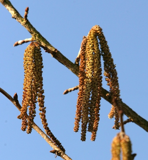 Notable for its roughly textured, corky bark, it produces long, yellow catkins in early spring and clusters of fringed nuts in autumn.