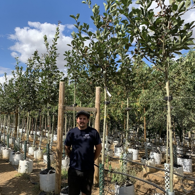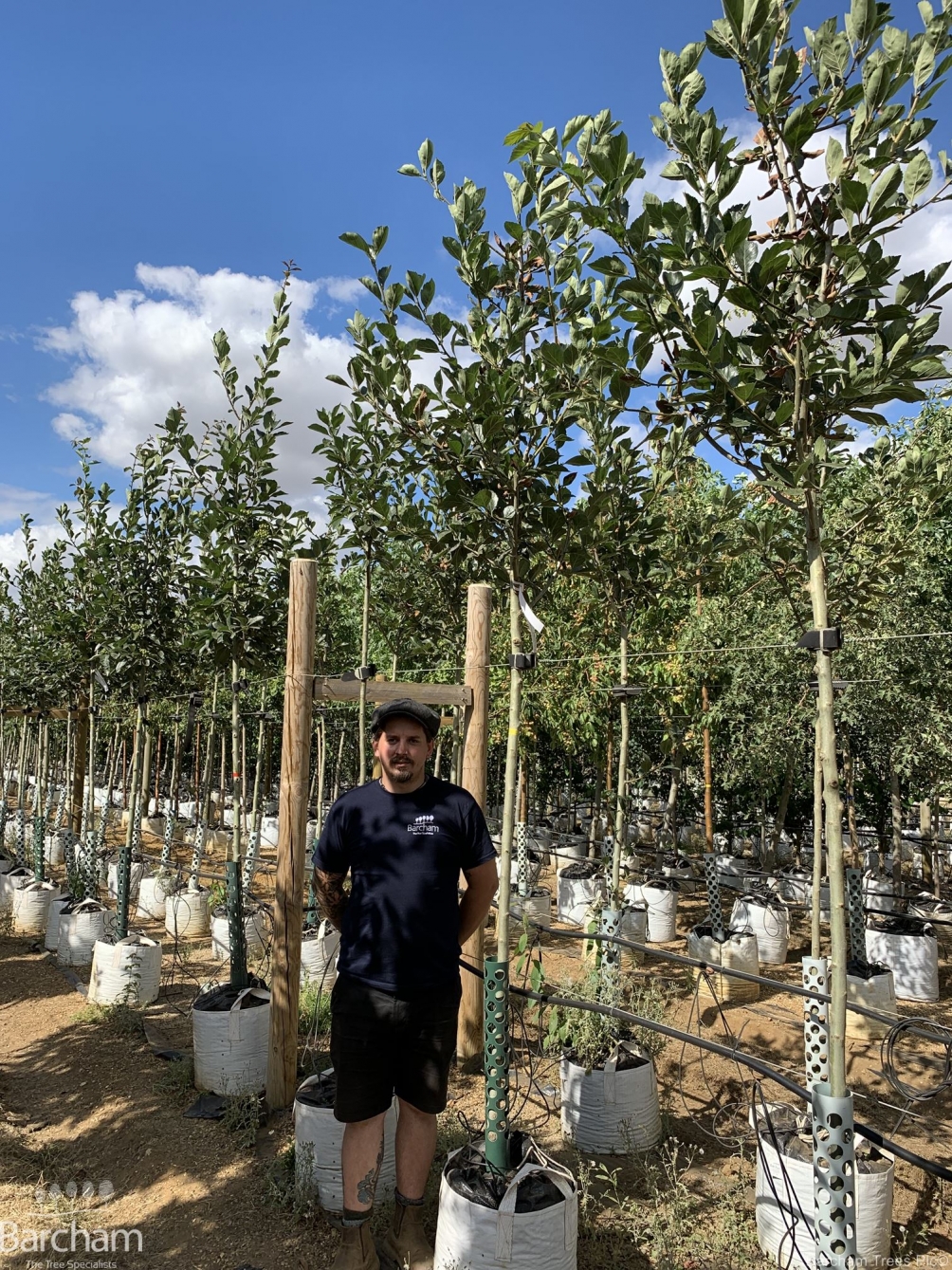 This clone is particularly resistant against rust. It makes a small densely headed tree with glossy deep green foliage which lasts through to December.