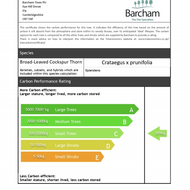 This small compact round-headed tree produces long sharp thorns along the span of its branches. The burnished oval leaves which turn a glorious red in autumn are accompanied by plentiful small red fruits.