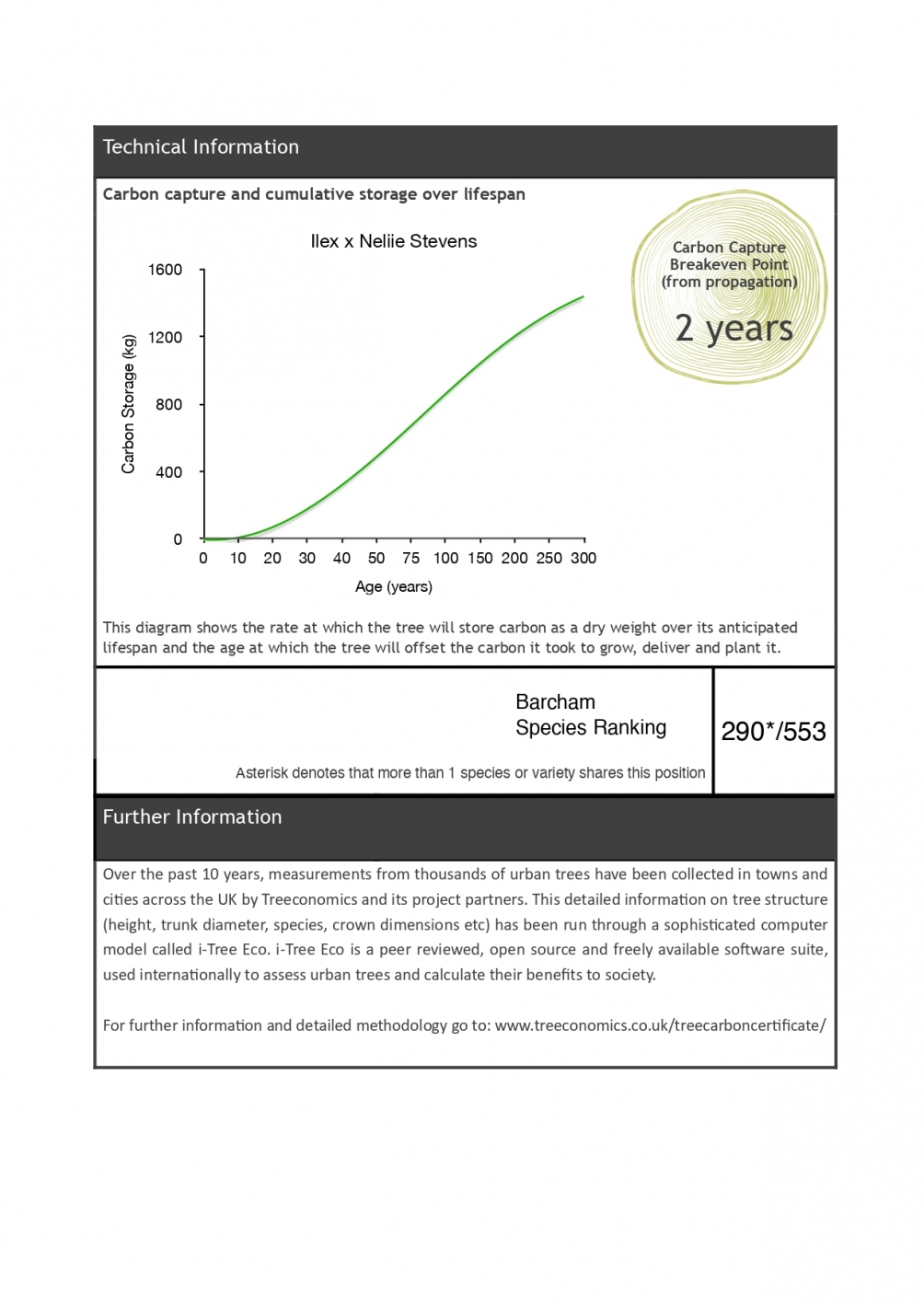 Ilex aquifolium Nellie Stevens thrives on free draining soils and, being evergreen, is an ideal feature and screening tree for gardens.
