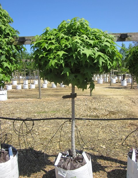 Liquidambar styraciflua Gumball is a mop headed tree that retains its dwarfing round shape.
