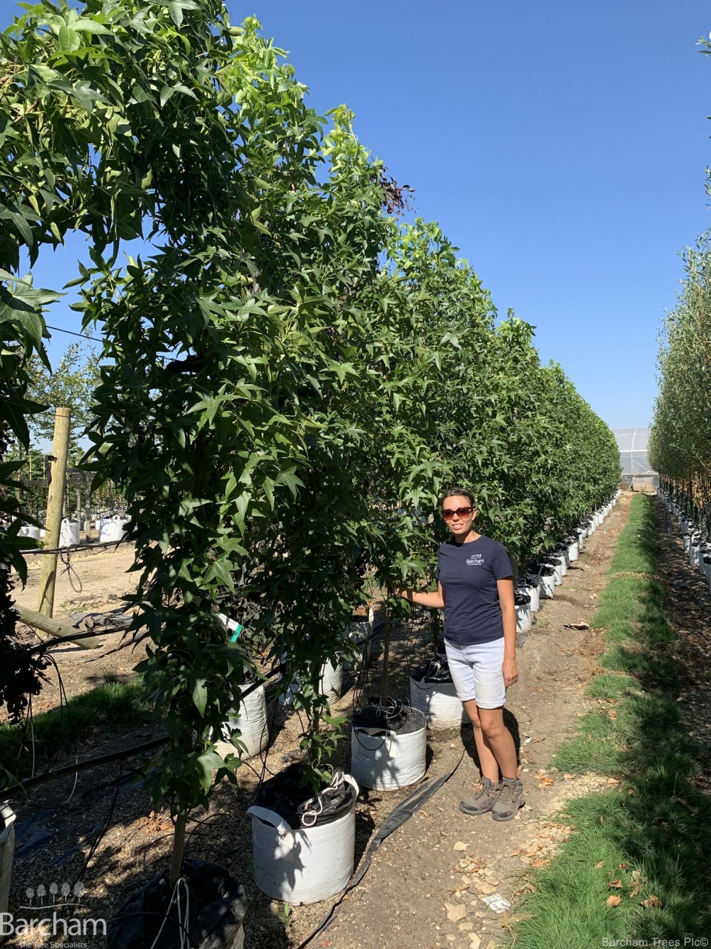 With a leaf akin to Stella or Worplesdon, the shape of this tree is Liquidambar’s equivalent of Cupressus sempervirens! Extremely columnar, it develops a ratio of height to width of 5 to 1. This American introduction also has good autumn colour with leaves turning yellow, orange and red before leaf fall.