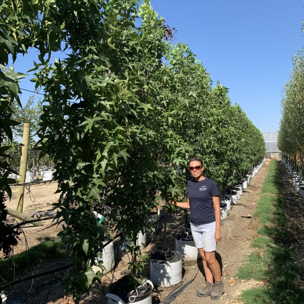 Thriving on most free draining soils this narrow form is ideal for small gardens or restricted streets. Autumn colour is more reliable on acid soils and like many clones of Liquidambar styraciflua, its bark is smooth when young unlike its parent.