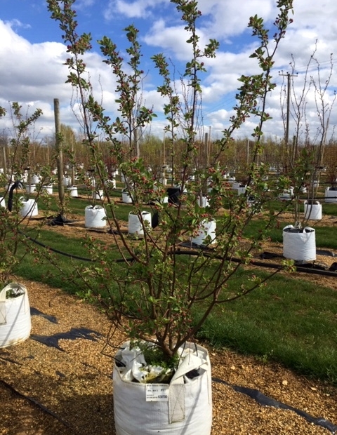 This multi-stemmed tree of medium height has flowers that are red in bud before turning white – and the blossom is borne in profusion in late spring.