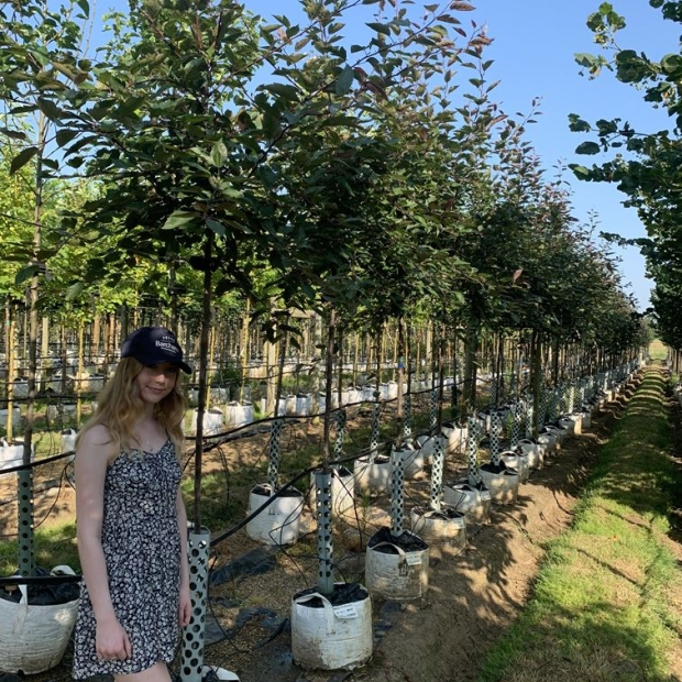 The young copper-crimson foliage turns bronze-green at maturity while the rich purple flowers which are lightly fragrant turn pink as the season progresses.