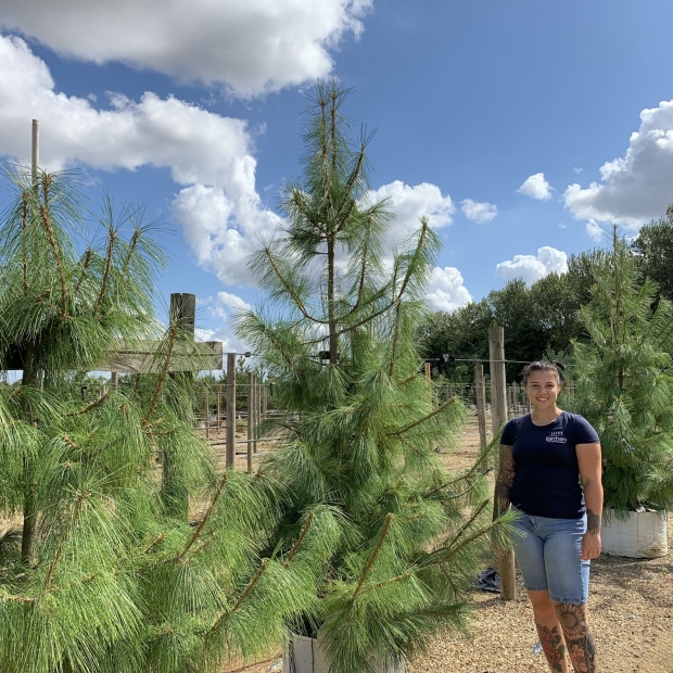 Elegant and most ornamental this large rather conical tree has blue-green foliage and pendent cones which become covered in resin