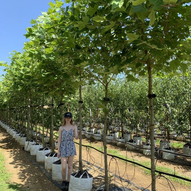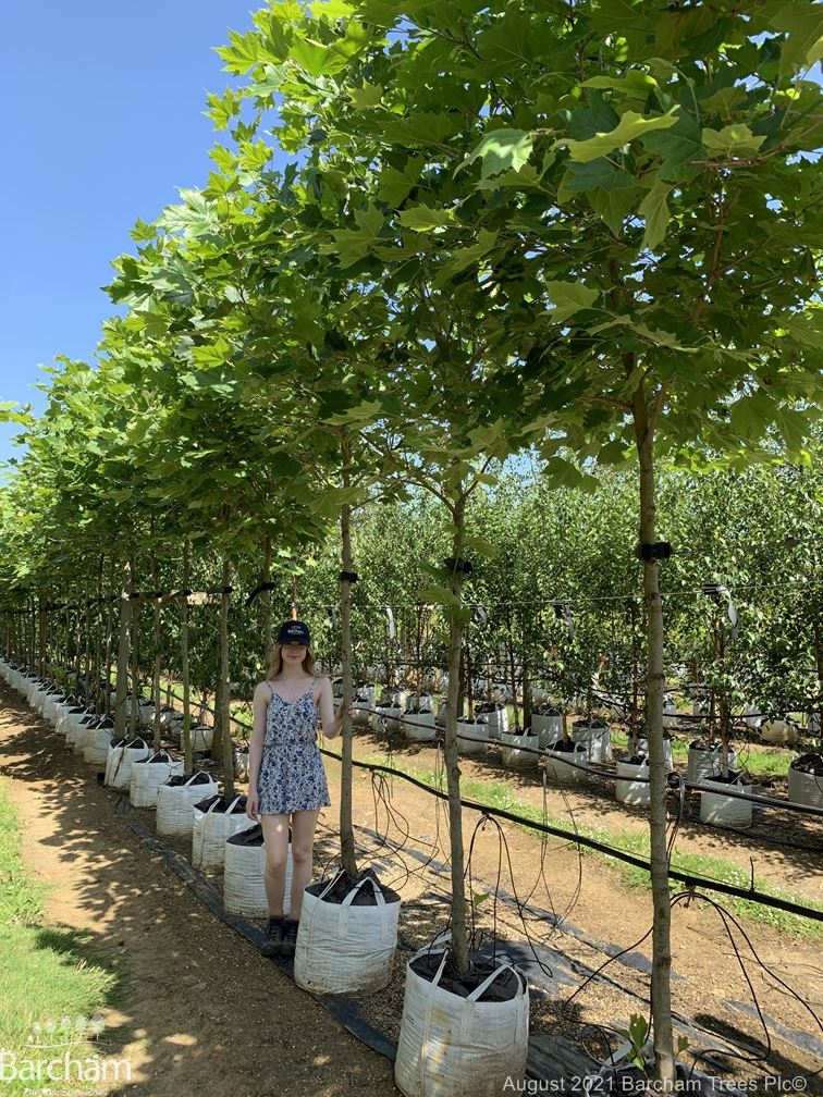 This has similar, attractively flaking bark to the London Plane, but has deeply cut five lobed leaves.