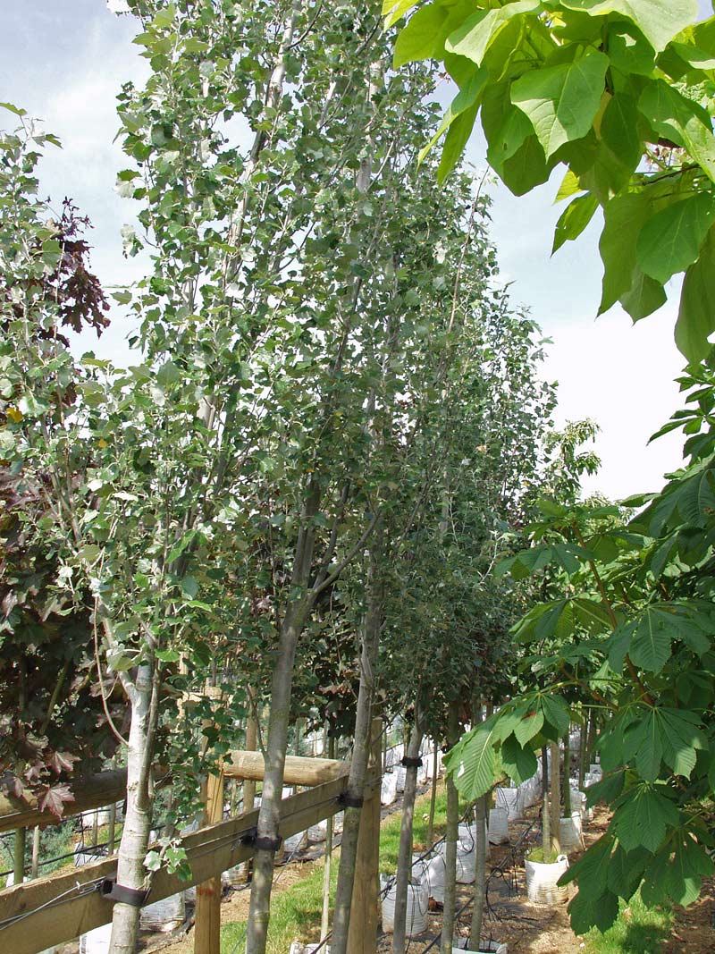 This cultivar of White Poplar was raised in Holland in the 1950s and is a cross between populus alba and Populus alba Pyramidalis.