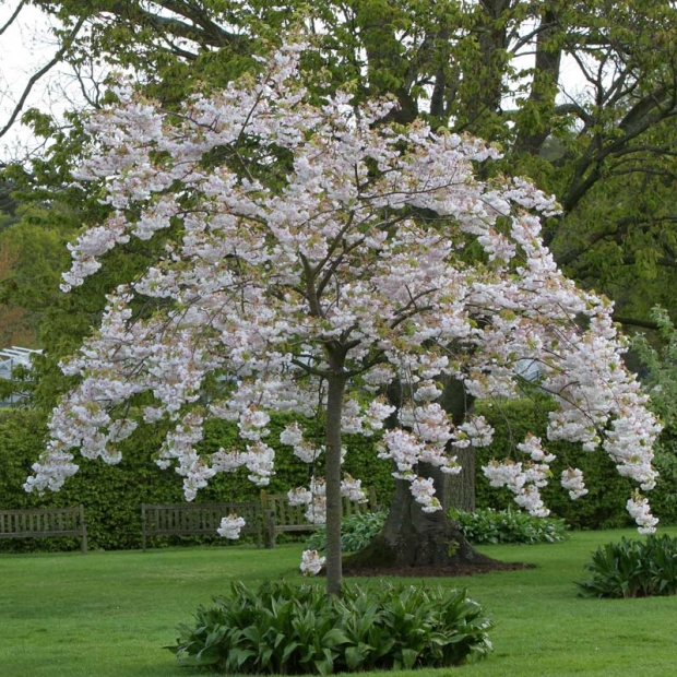 A small tree with a broad rounded habit this is one of the most outstanding Japanese Cherries and one we strongly recommend for verges parks and gardens.