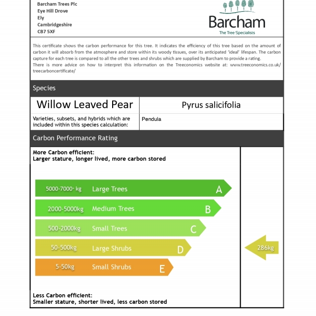 This small weeping and rather broad tree produces its creamy white flowers and willow-like silvery grey foliage at the same time in spring.