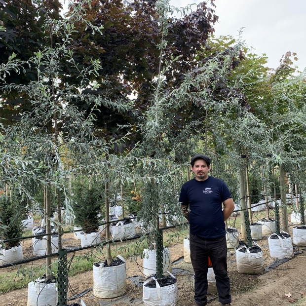 Its weeping branches are silver grey giving good winter interest.