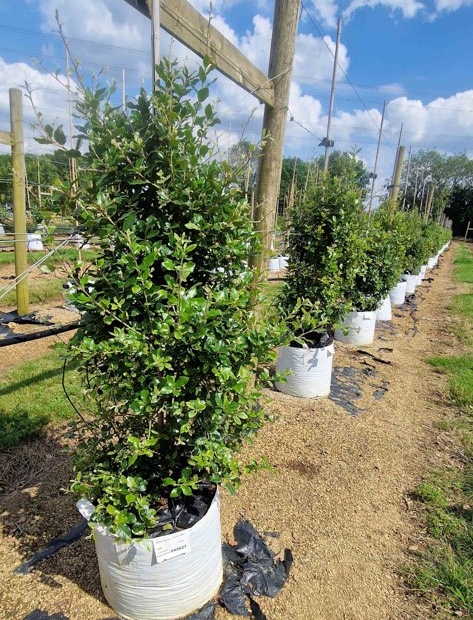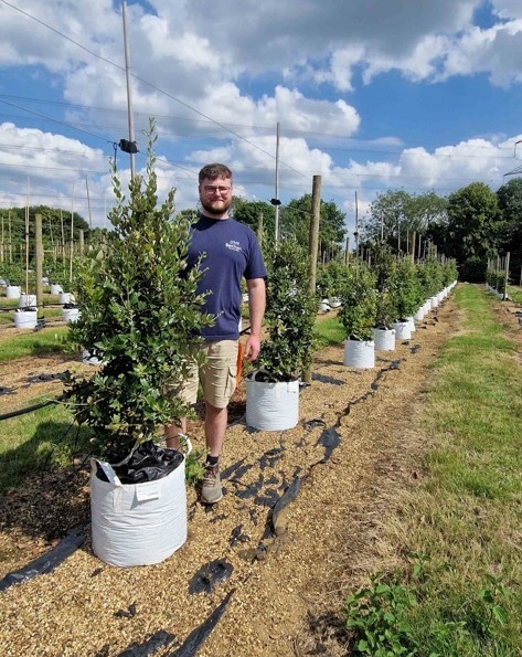 The Holm Oak is a highly versatile evergreen tree, perfect for various landscaping needs. This feathered variety is cultivated with branches extending from the base upwards, creating a dense, natural structure that excels as a privacy screen or windbreak.