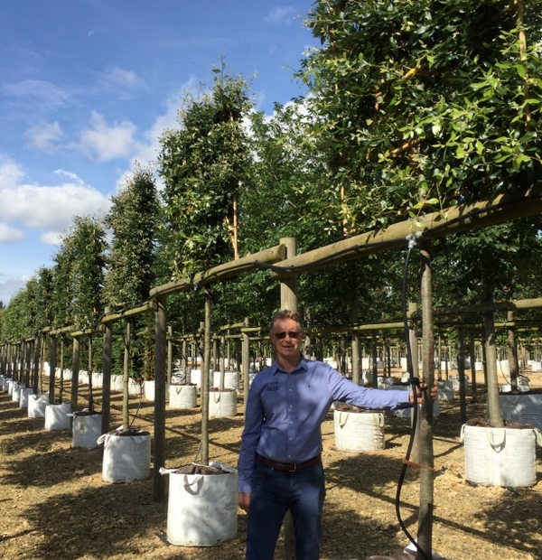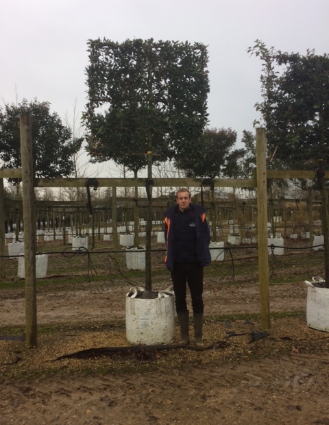 Perfect for those of you where space is at a premium but privacy screening is a necessity. These Quercus ilex has a 1.8 metre clear stem and then a flat pleached frame of 1.4 metres wide by 1.8 metre high. It can be routinely pruned to form an evergreen window above fence height which takes no width away from a small garden space