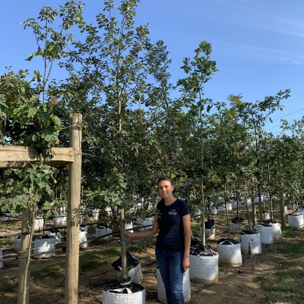 Similar in many respects to Quercus robur it tends to have a greater degree of apical dominance so developing a more pyramidal crown.