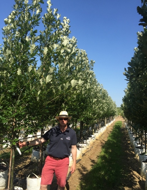 Selected from acorns in 1974 from a mother plant in Illinois, this magnificent clone is thought to be a Quercus roburFastigiata x Quercus bicolor cross. Its upright habit makes it a great urban tree but its resistance to powdery mildews gives its leaves a lustrous and clean look that makes Quercus robur Fastigiata look positively dowdy! Its leaves are two toned, dark green above