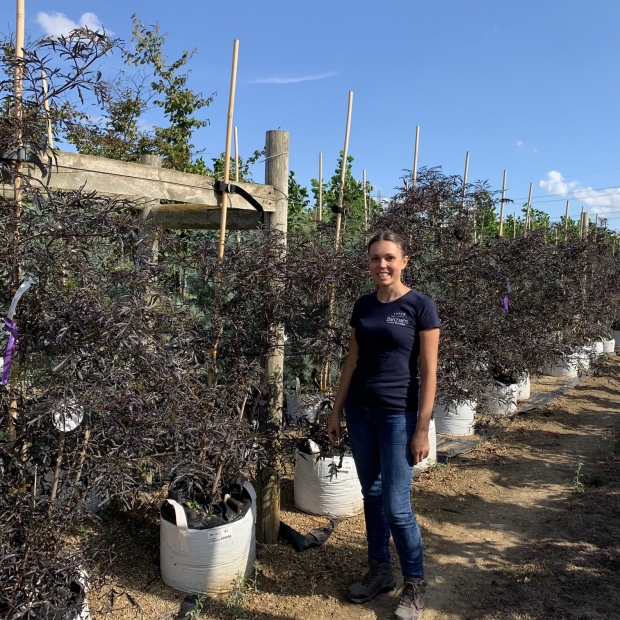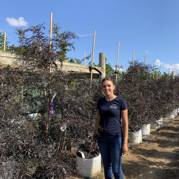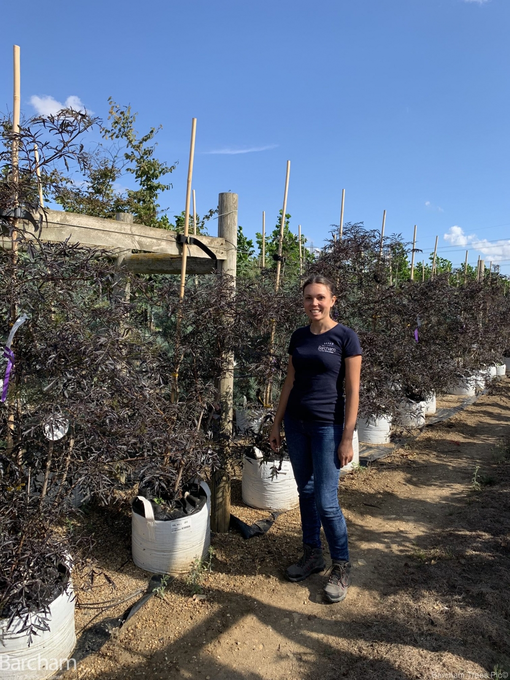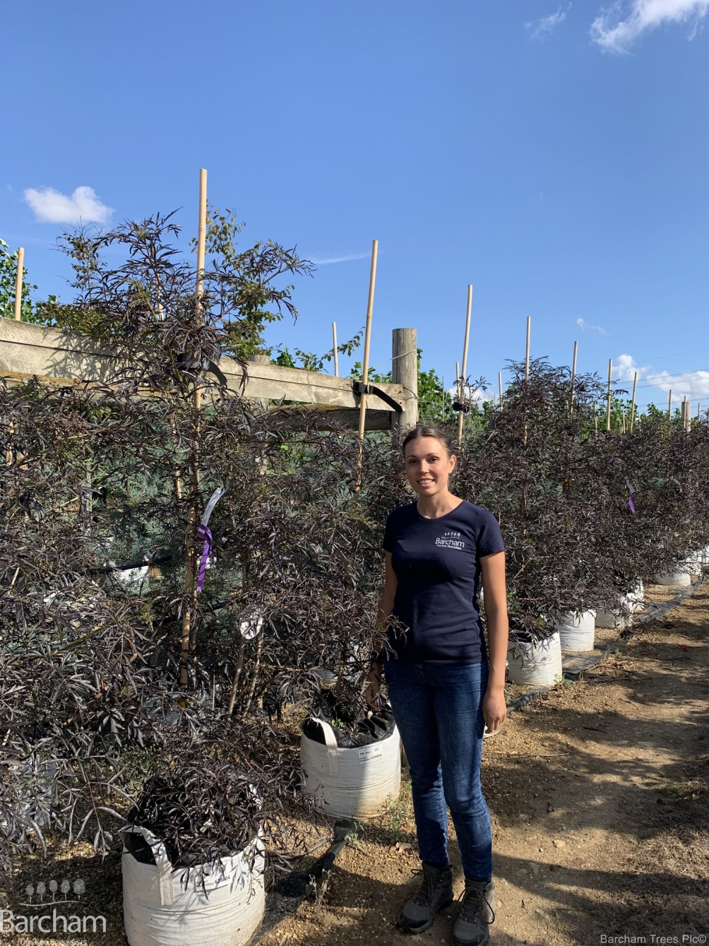 Part of the Elder family, this selection has fine purple/ black leaves that are heavily cut and provide beautiful contrast within a small garden as it can be routinely pruned in the winter to keep it from growing too large. It will make a small bushy tree if left alone but is more often seen as a shrub that produces pink tinged white elder flowers in mid summer that contrasts wonderfully with its deeper coloured foliage.