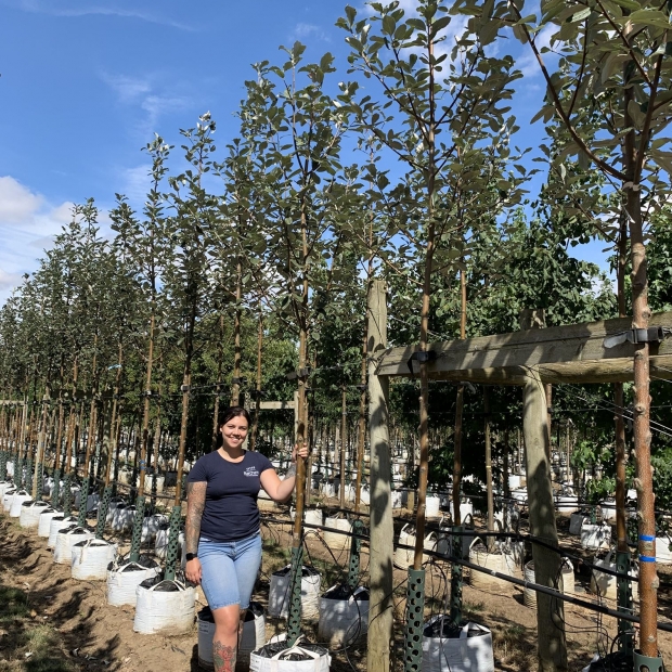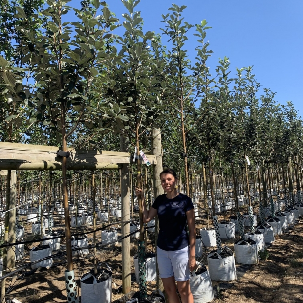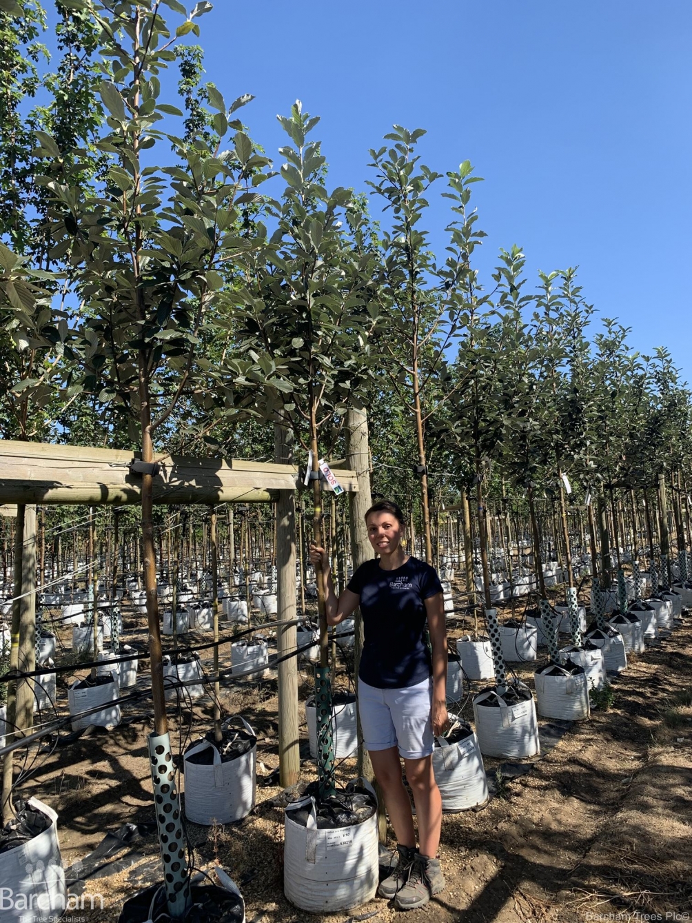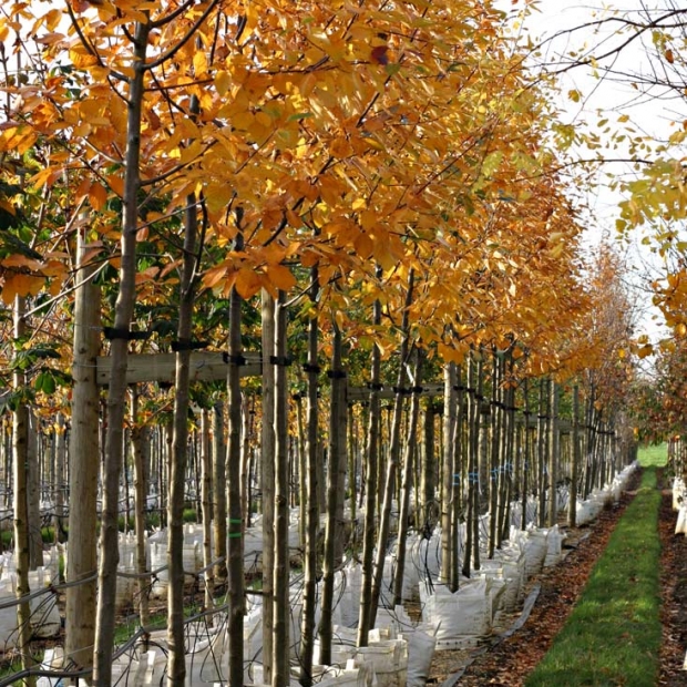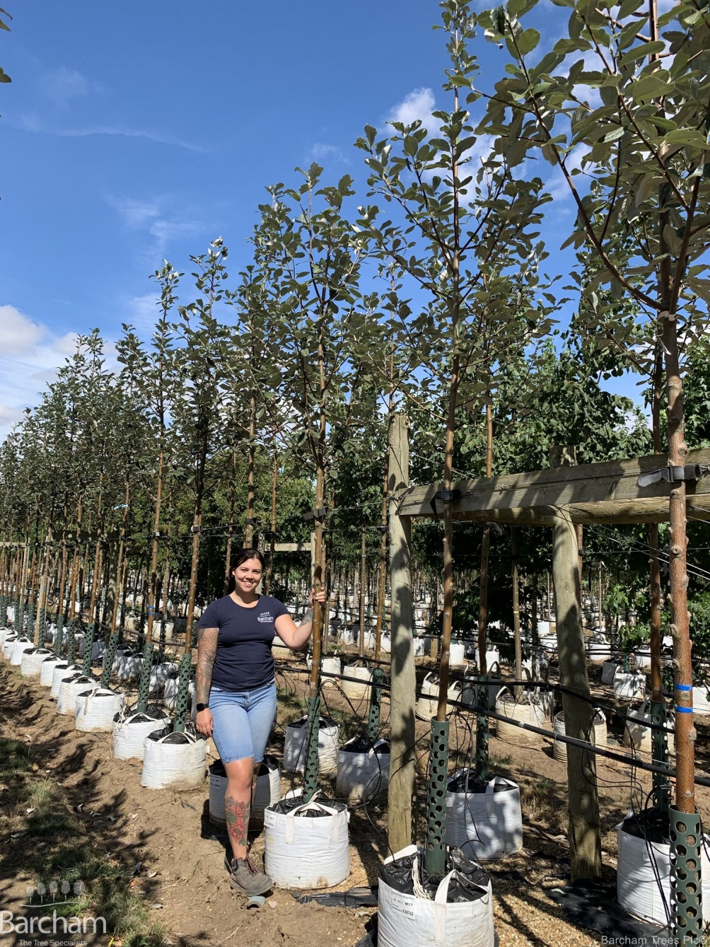 The clusters of creamy white flowers appear in April and May, followed by bright orange-red fruit in the autumn time, when the leaves turn a golden brown before falling. Interestingly this tree loses its leaves much later than Sorbus aria Lutescens, so if planting an avenue it is a good idea to mix Lutescens and Magnifica to get the best from these two trees.