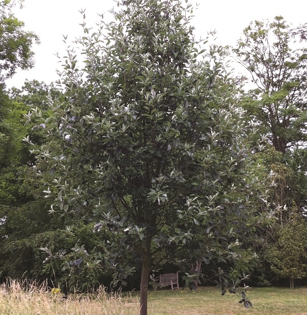 This medium size tree is conical when young becoming broadly oval at maturity.