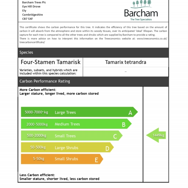 We offer this as a small standard tree with a rounded crown.