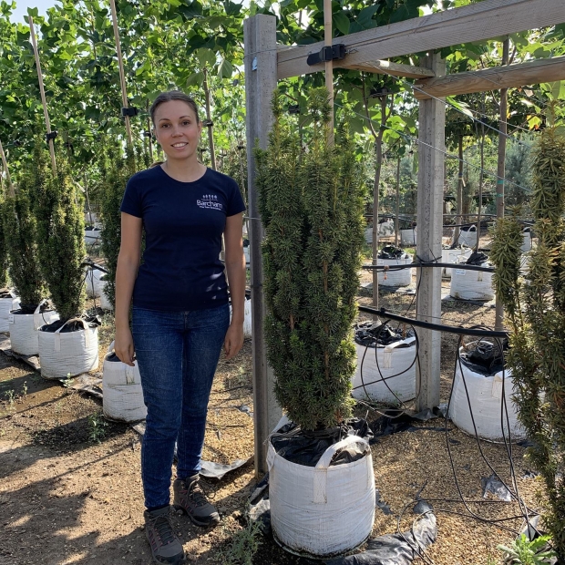 It thrives on most free draining soils and is a firm favourite for small gardens up and down the UK where it is planted in multiples when a structured formality is required. The spring flush of foliage is a lighter yellow than its appearance for the rest of the year and it can tolerate full sun or partial shade