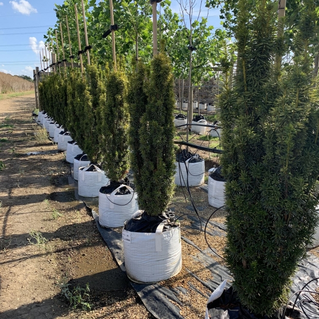 A male form discovered later than its female green counterpart back in the 1880s. It forms a dense columnar tree at maturity with gold tipped margined leaves and stiffly ascending branches. Not that it needs much maintenance but Yew is a very adaptable tree to handle as unlike other conifers its shape and size can be reinstated by severe pruning back into old wood in early spring.